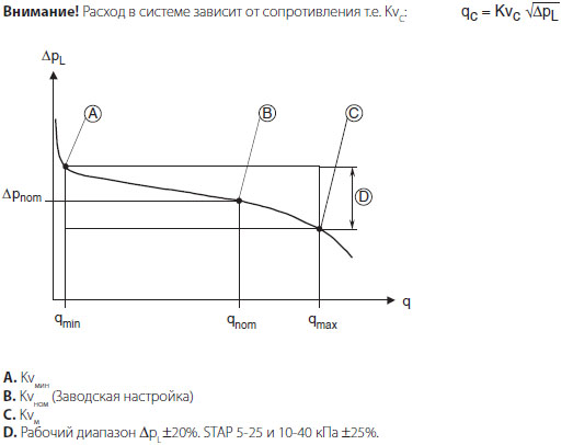 В зависимости от конструктивного исполнения установки имеющийся перепад давления в некоторых контурах может значительно отличаться от нагрузки. Для обеспечения корректного функционирования регулирующего клапана в таком случае можно поддерживать перепад давления почти постоянным путем системы клапана STAP непосредственно напротив каждого регулирующего клапана. Номинальные характеристики регулирующего клапана не будут превышены, а коэффициент управления равняется и останется близким к 1.